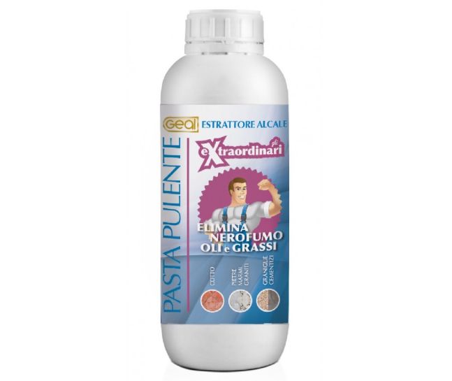Pasta estrattiva alcalina ad alta efficacia contro macchie di nerofumo, grassi, oli minerali. Ideale su cotto, pietra naturale, cemento, gres, klinker. Azione profonda e localizzata.