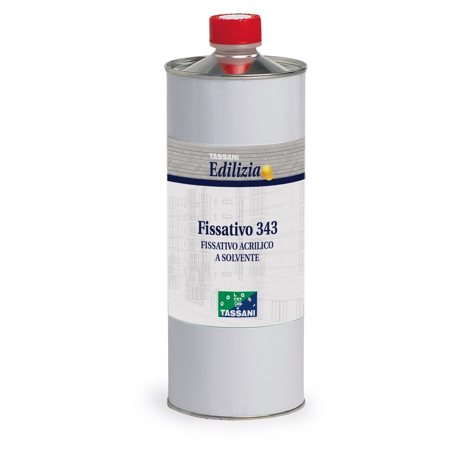 Fissativo acrilico 343 Tassani alcali-resistente inodore. Rende uniformi e riduce gli assorbimenti degli intonaci. Ottimo anche su intonaci lisciati a gesso.