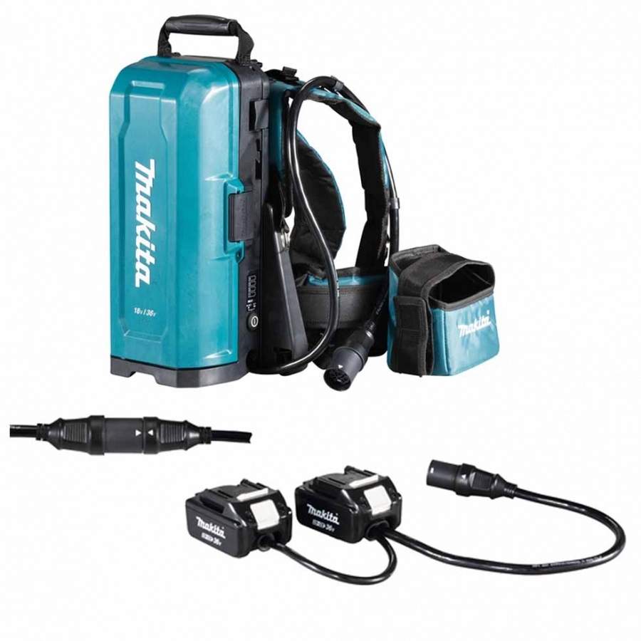 Questo accessorio Makita è fornito con zaino adattatore per 4 batterie 18v e 2 adattatori (18v e 18vx2).
