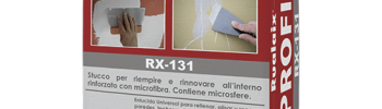 RX-131 Rualaix Profix stucco in polvere fibrato e microsferato, indicato per rinnovare, riempire, rasare e riparare difetti su supporti verticali compatti e consistenti. Presa lenta.