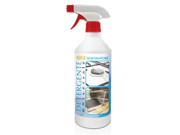 GEAL Sgrassatore Universale รจ il detergente multiuso ideale per la pulizia quotidiana e profonda di tutte le superfici dure. Elimina efficacemente grasso, sporco e residui organici. Sicuro, potente e pratico. 750ml