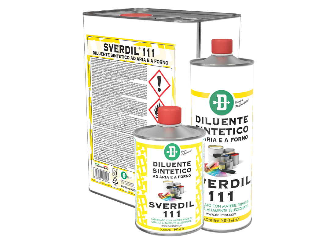 E’ il diluente particolarmente indicato per l’applicazione a spruzzo di prodotti vernicianti sintetici essiccanti ad aria e a forno. Aggiunto a detti prodotti, sverdil 111 ne facilita l’applicazione favorendo la distensione e migliorandone l’eventuale brillantezza. Formulato con materie prime pure ben selezionate, sverdil 111 non manifesta tendenza all’ingiallimento e può essere utilizzato anche per bianchi o tinte pure. Nei prodotti essiccanti a forno evita la formazione di bollicine antiestetiche in quanto la sua evaporazione particolarmente bilanciata permette una eccellente distensione senza provocare la formazione di colature.